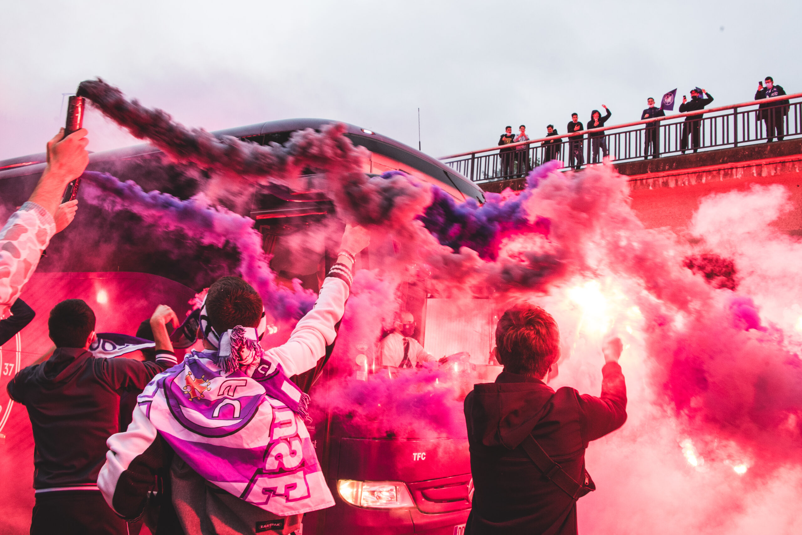 Photos prises à l'occasion d'acceuils de bus organisés par les supporters, et lors de rencontres de Ligue 2.